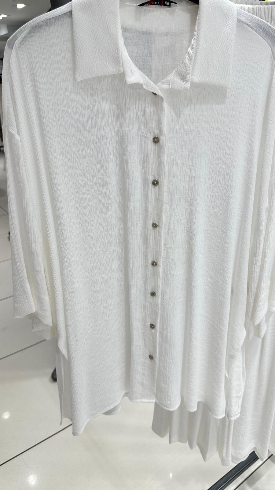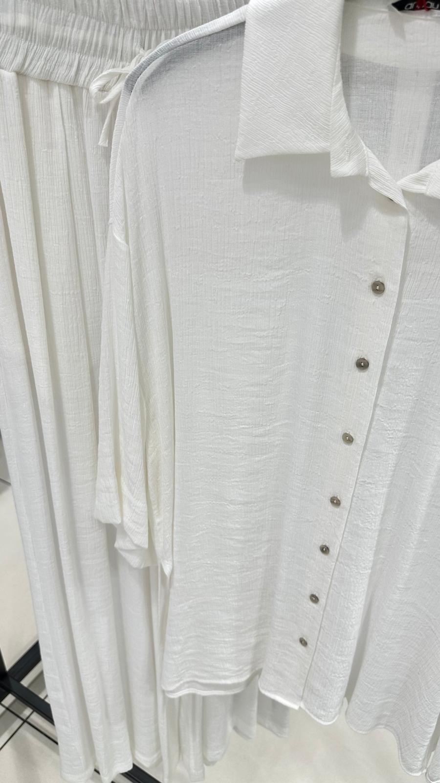 Ana Sayfa Giyim Beyaz Yarasa kol Gömlek Takım